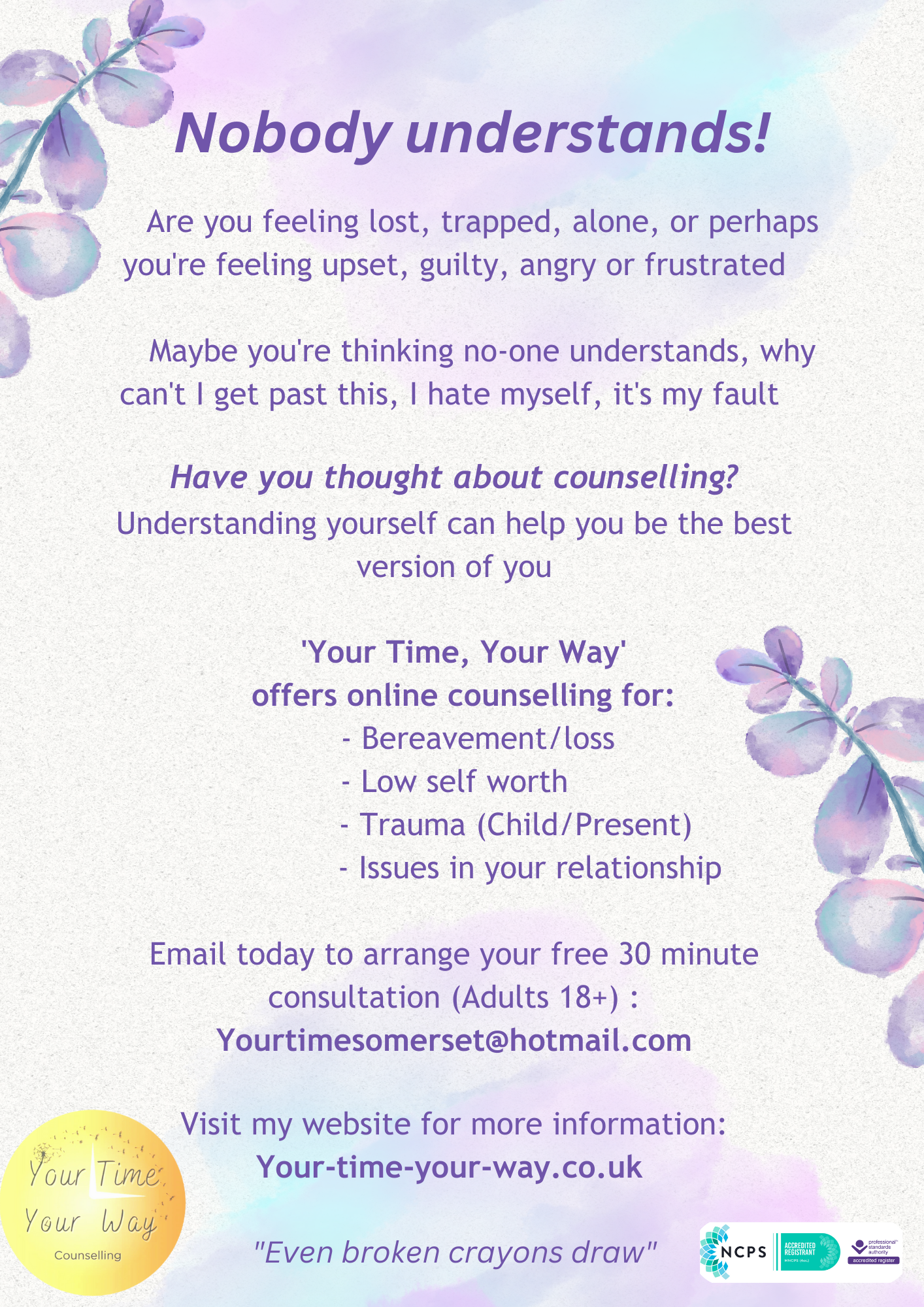 Your Time, Your Way provides a safe space to explore what is going on for you in a non-judgmental environment.